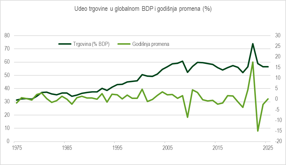 Fragmentacija je najočiglednija u trgovini i lancima snabdevanja. Poučene iskustvom prethodnog petogodišnjeg perioda raznorodnih poremećaja, sve više kompanija uključujući i globalne sisteme, usvaja logiku koja više ne posmatra lance vrednosti samo kroz cenu i efikasnost, već i kroz otpornost, bezbednost, dostupnost resursa, i kontinuitet isporuke. Istraživanja pokazuju da preko 90% rukovodilaca u lancima snabdevanja lokalizuje geografiju dobavljača i način organizacije nabavke. To praktično znači više regionalnih tokova, više alternativnih dobavljača, veće zalihe, više logističkih ruta, i strože kriterijume pouzdanosti. Za domaća i globalna MMSP, koja su po prirodi agilna i prilagodljiva, ovo stvara značajne prilike jer se bliža tržišta i regionalna partnerstva prirodno šire,